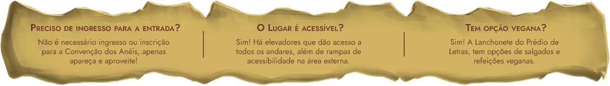 Explore barraquinhas com produtos geek exclusivos, cosplays incríveis da Terra Média, e o artists' alley. Delicie-se nos foodtrucks, participe de atividades como arqueria e batalhas medievais, e concorra a prêmios nos sorteios.